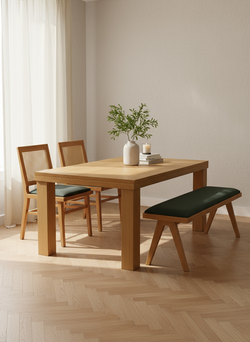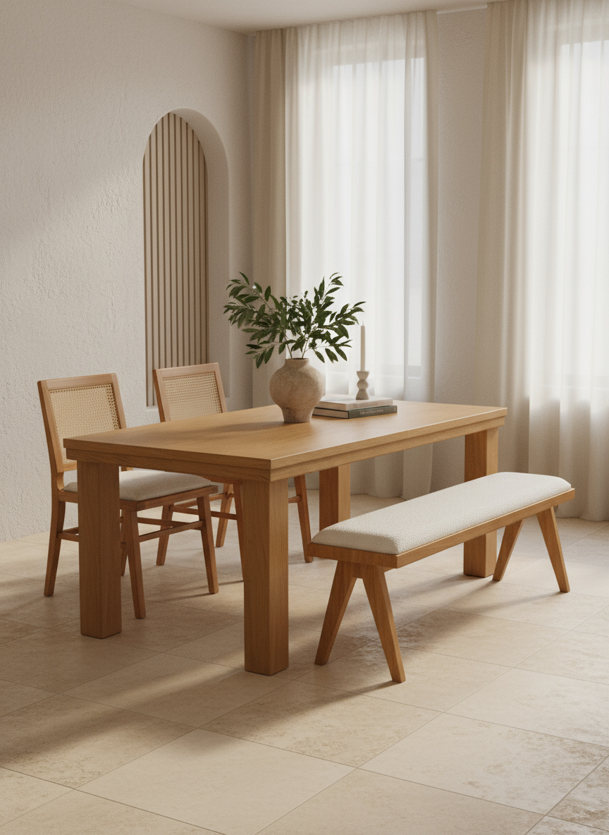 The Kumasi Bench. Made to complement our dining tables, these chairs are the perfect blend of craftsmanship and comfort. Timeless, practical and elegant.